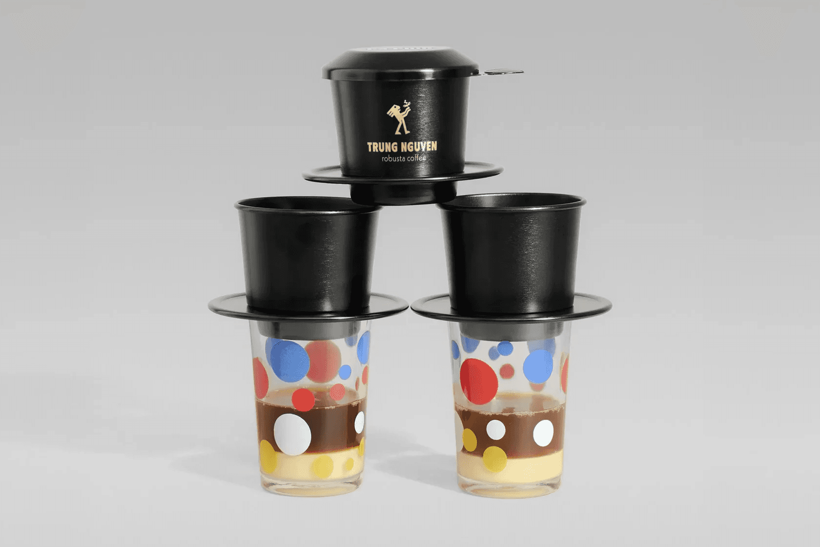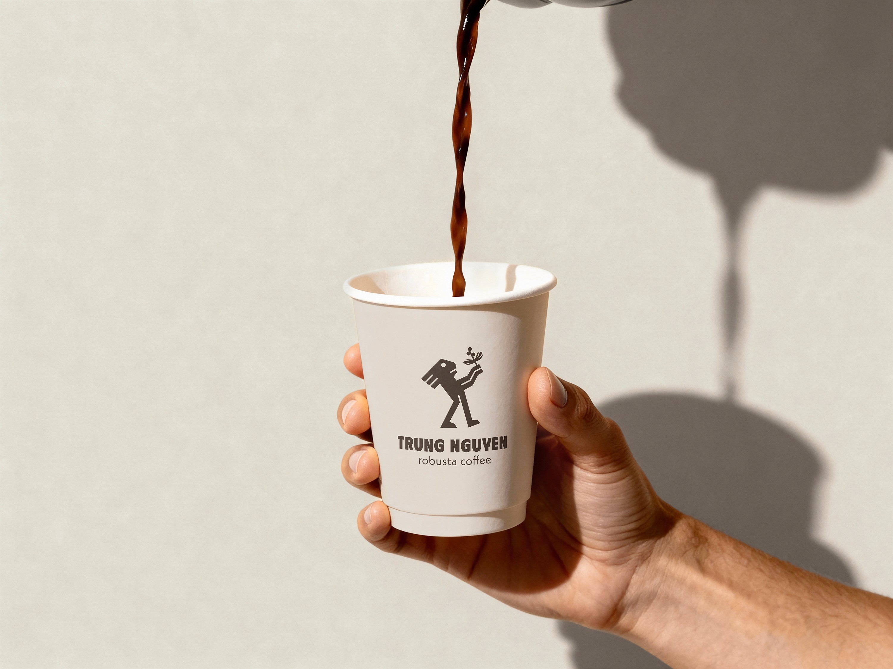 The geometric-shaped human figure was inspired by the pattern on Dong Son bronze drum, with the hands holding a coffee plant. The pose of the figure represents the appreciation to the nature resources.